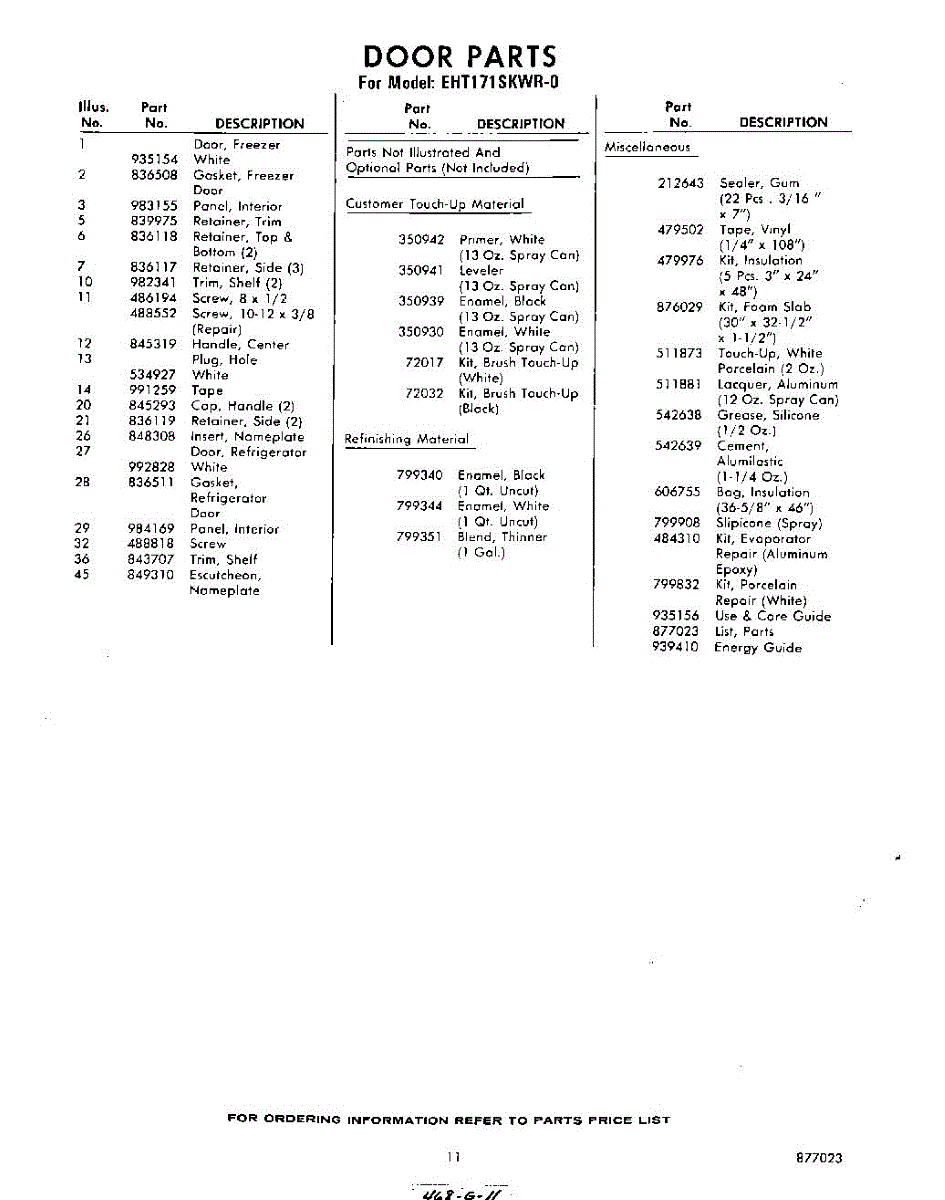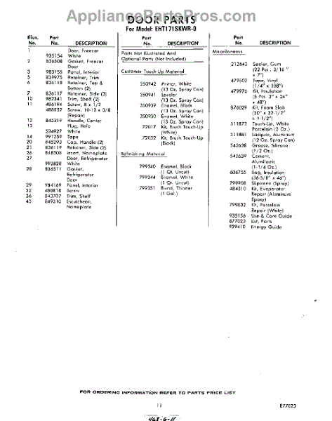 Parts for Whirlpool EHT171SKWR0: 11 - Lit / Optional Parts
