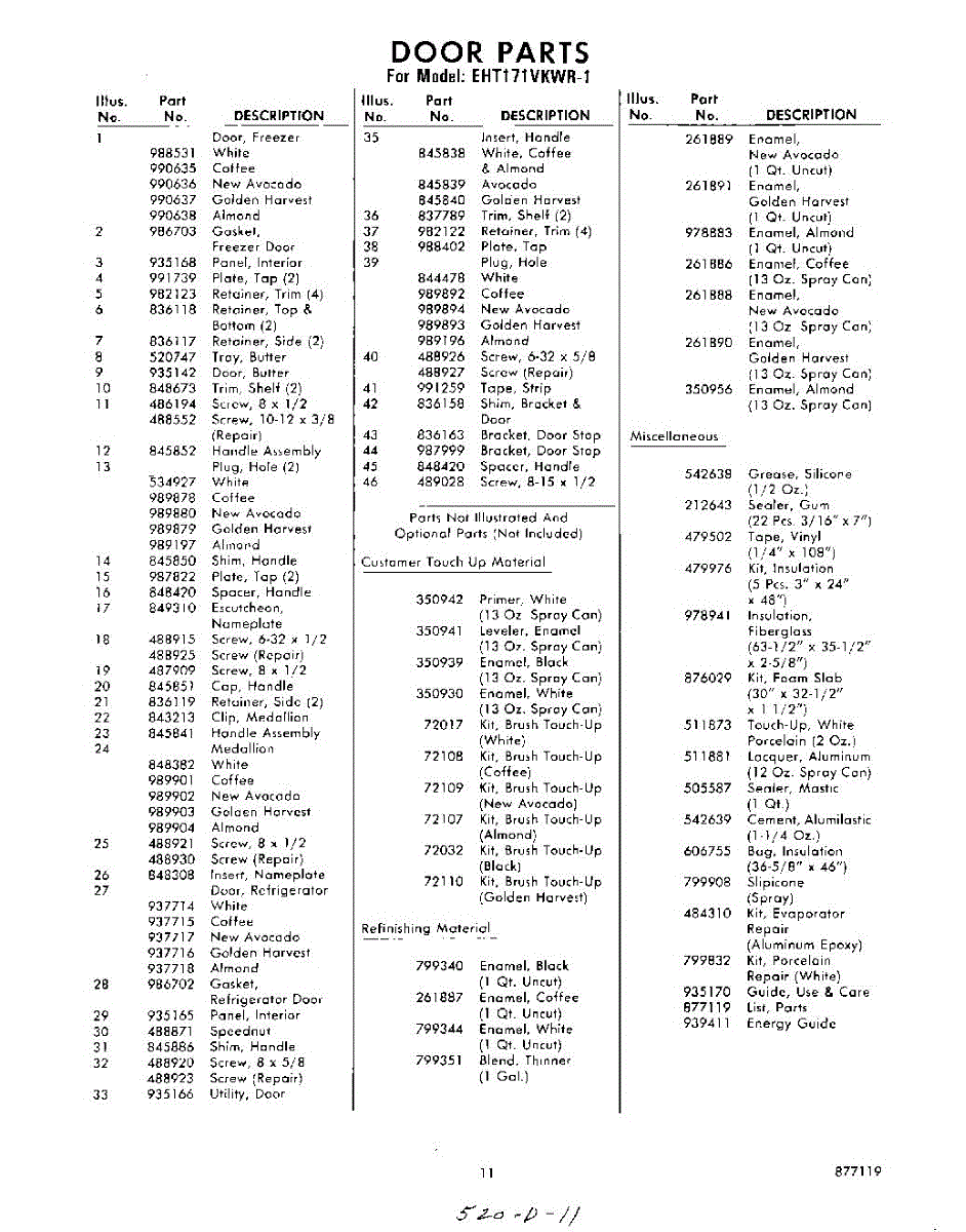 Parts for Whirlpool EHT171VKWR1: 11 - Lit / Optional Parts
