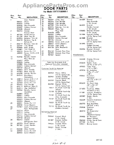 Parts for Whirlpool EHT171XKWR1: 11 - Lit / Optional Parts