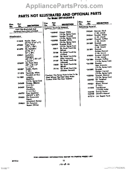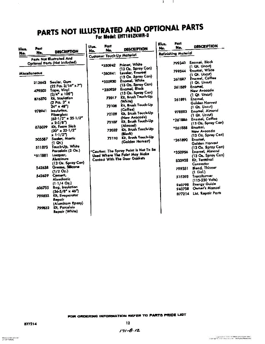 Parts for Whirlpool EHT181ZKWR0: 12 - Lit / Optional Parts