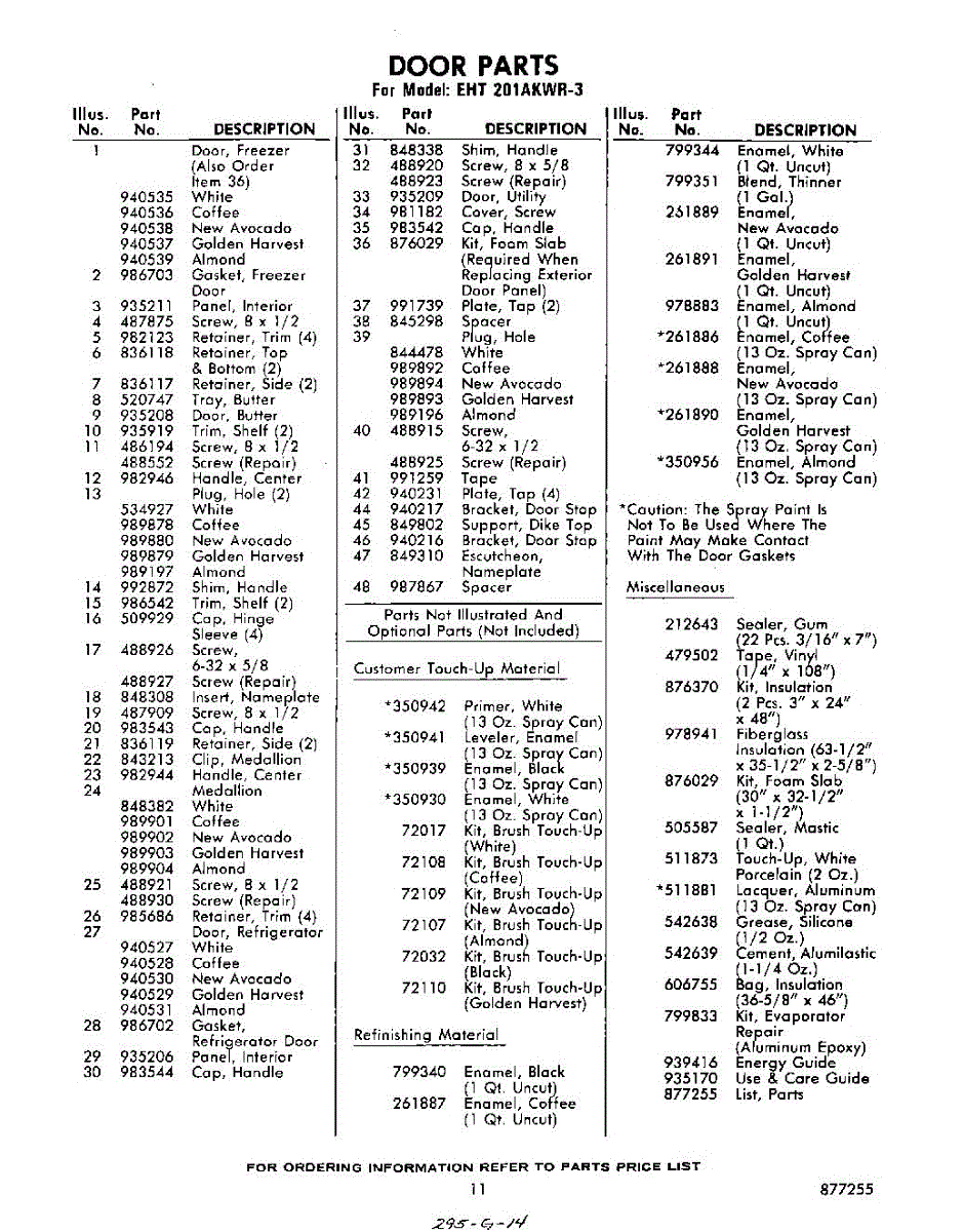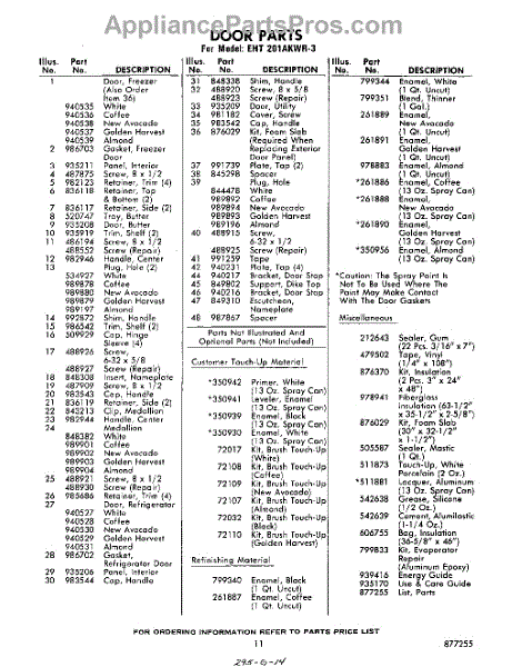 Parts for Whirlpool EHT201AKWR3: 11 - Lit / Optional Parts