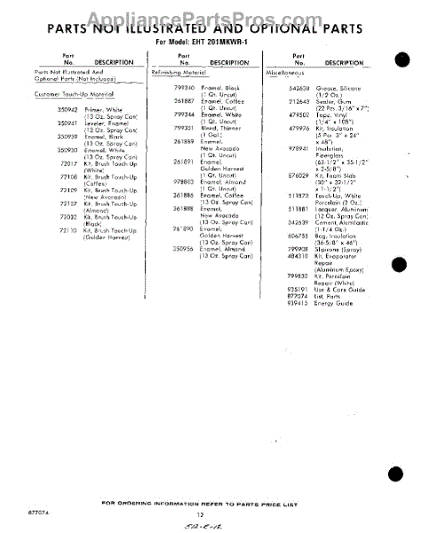 Parts for Whirlpool EHT201MKWR1: 12 - Lit / Optional Parts