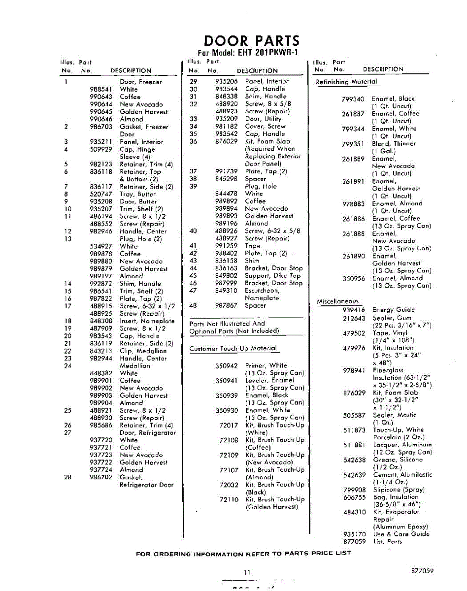 Parts for Whirlpool EHT201PKWR1: 11 - Lit / Optional Parts