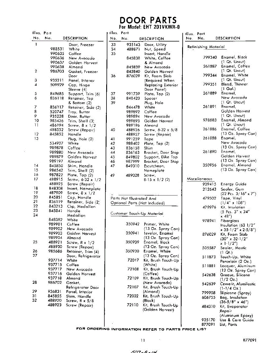 Parts for Whirlpool EHT201VKWR0: 11 - Lit / Optional Parts