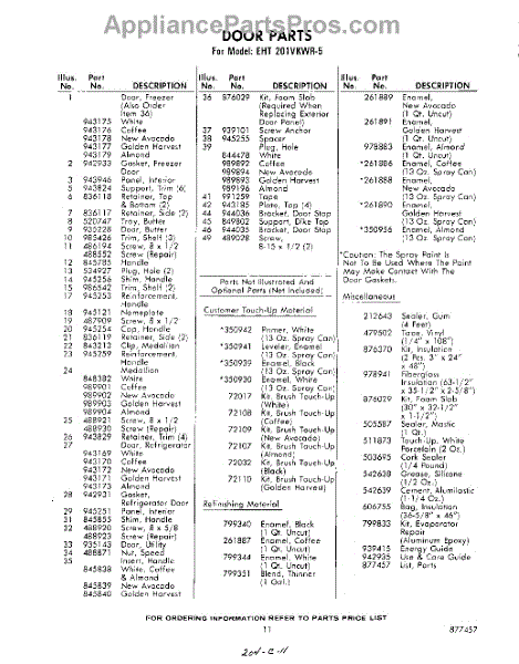Parts for Whirlpool EHT201VKWR5: 11 - Lit / Optional Parts