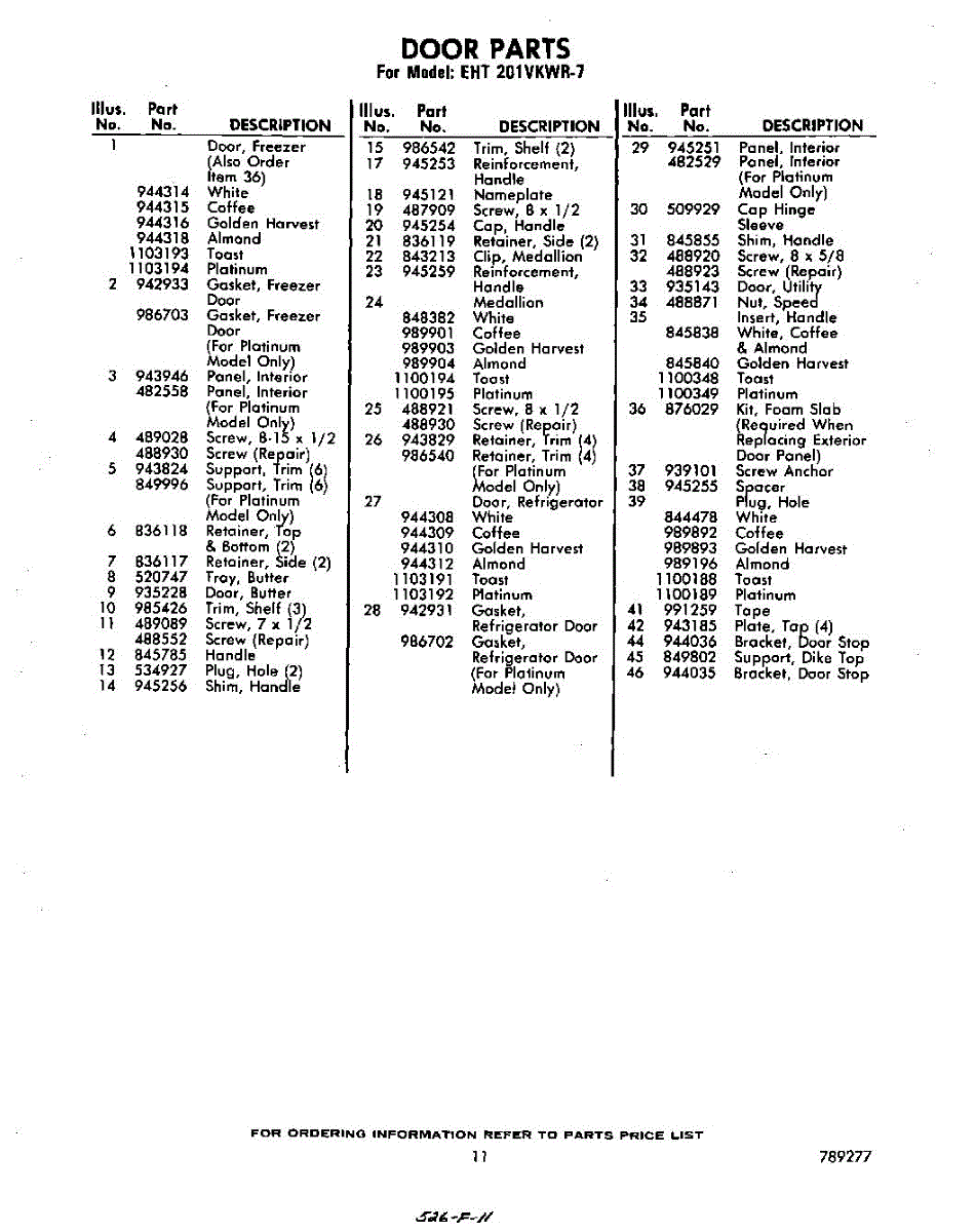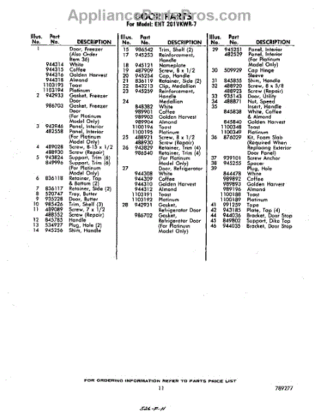 Parts for Whirlpool EHT201VKWR7: 11 - Lit / Optional Parts