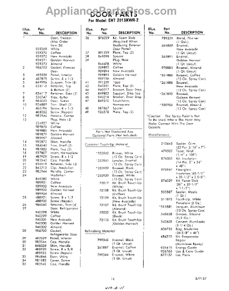 Parts for Whirlpool EHT201XKWR2: 11 - Lit / Optional Parts