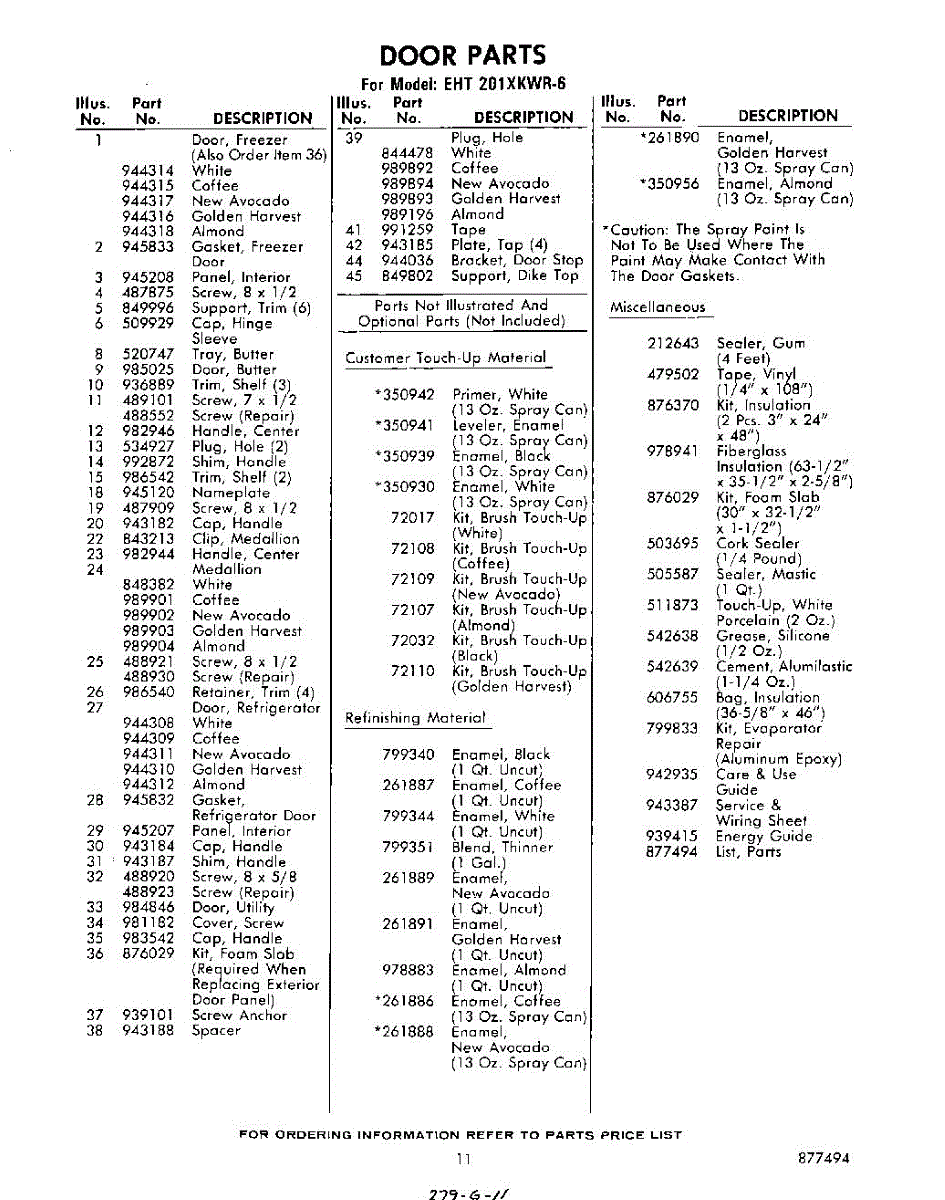 Parts for Whirlpool EHT201XKWR6: 11 - Lit / Optional Parts