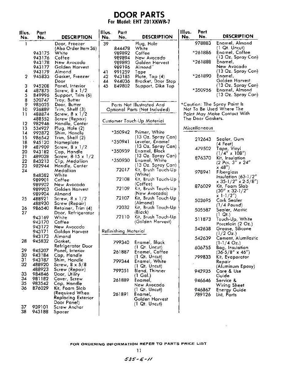Parts for Whirlpool EHT201XKWR7: 11 - Lit / Optional Parts
