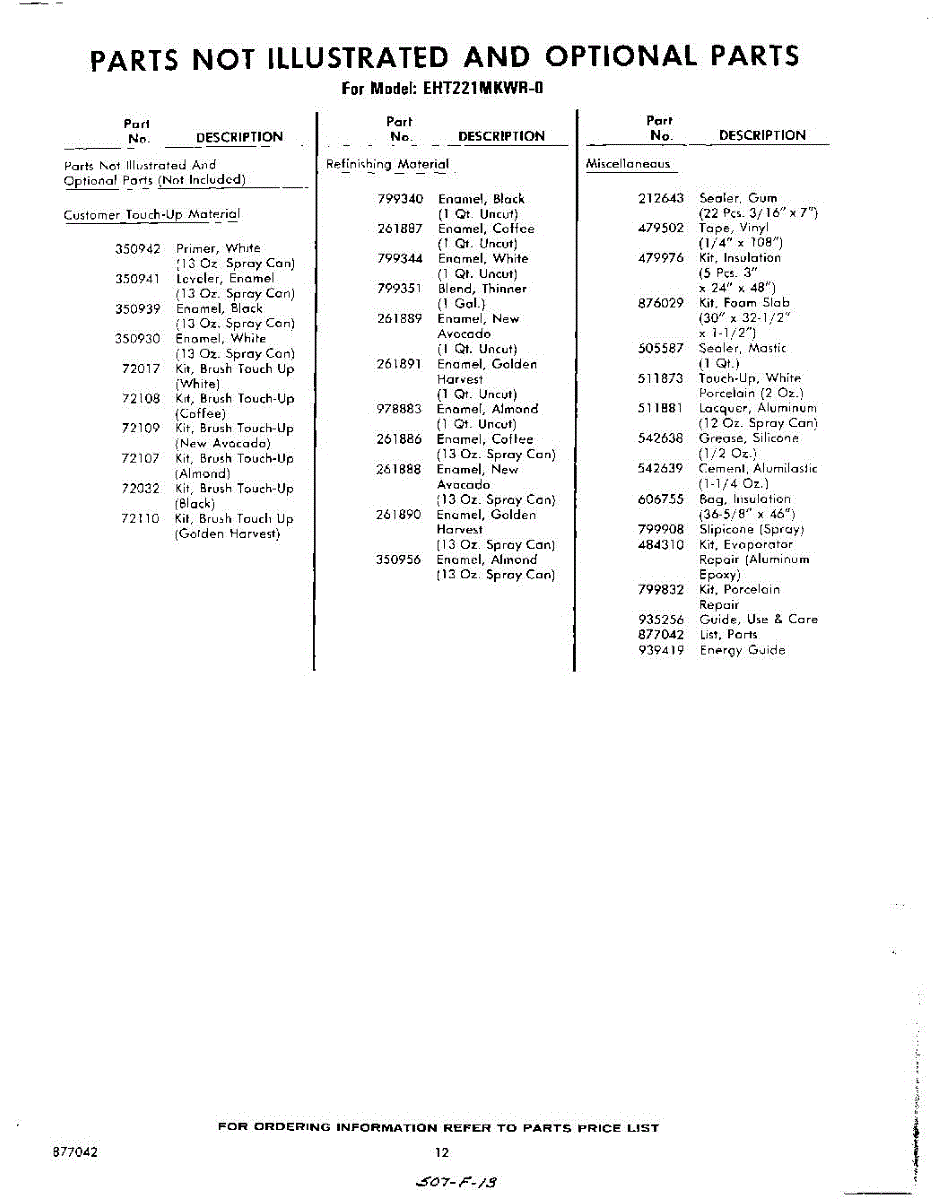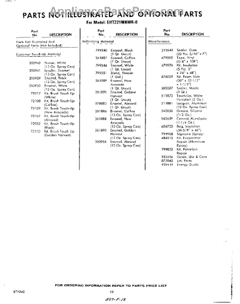 Parts for Whirlpool EHT221MKWR0: 12 - Lit / Optional Parts