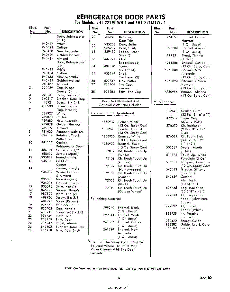 Parts for Whirlpool EHT221MTWR1: 05 - Lit / Optional Parts
