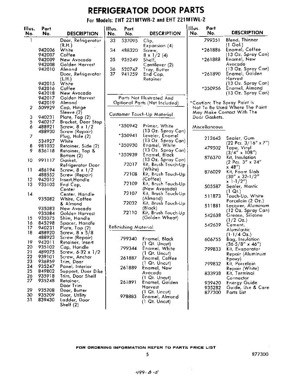 Parts for Whirlpool EHT221MTWR2: 05 - Lit / Optional Parts