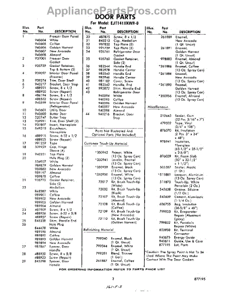 Parts for Whirlpool EJT141XKWR0: 03 - Lit / Optional Parts