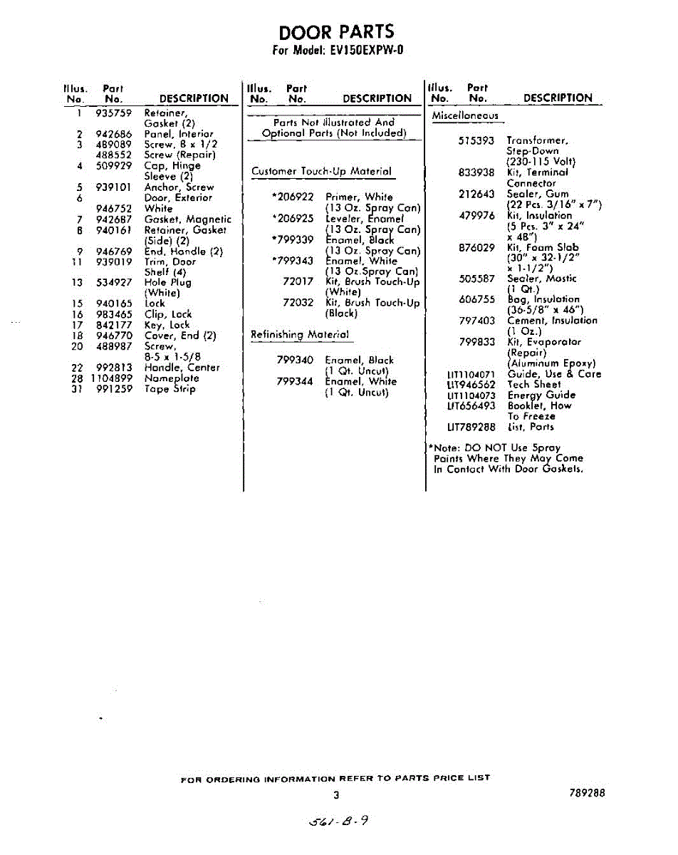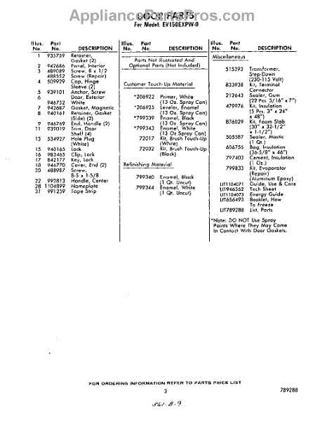 Parts for Whirlpool EV150EXPW0: 03 - Lit / Optional Parts