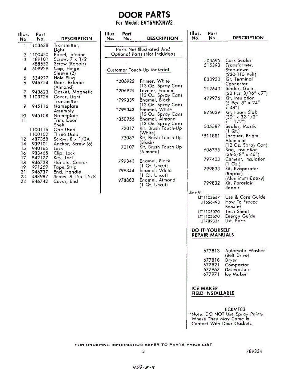 Parts for Whirlpool EV15HKXRW2: 03 - Lit / Optional Parts