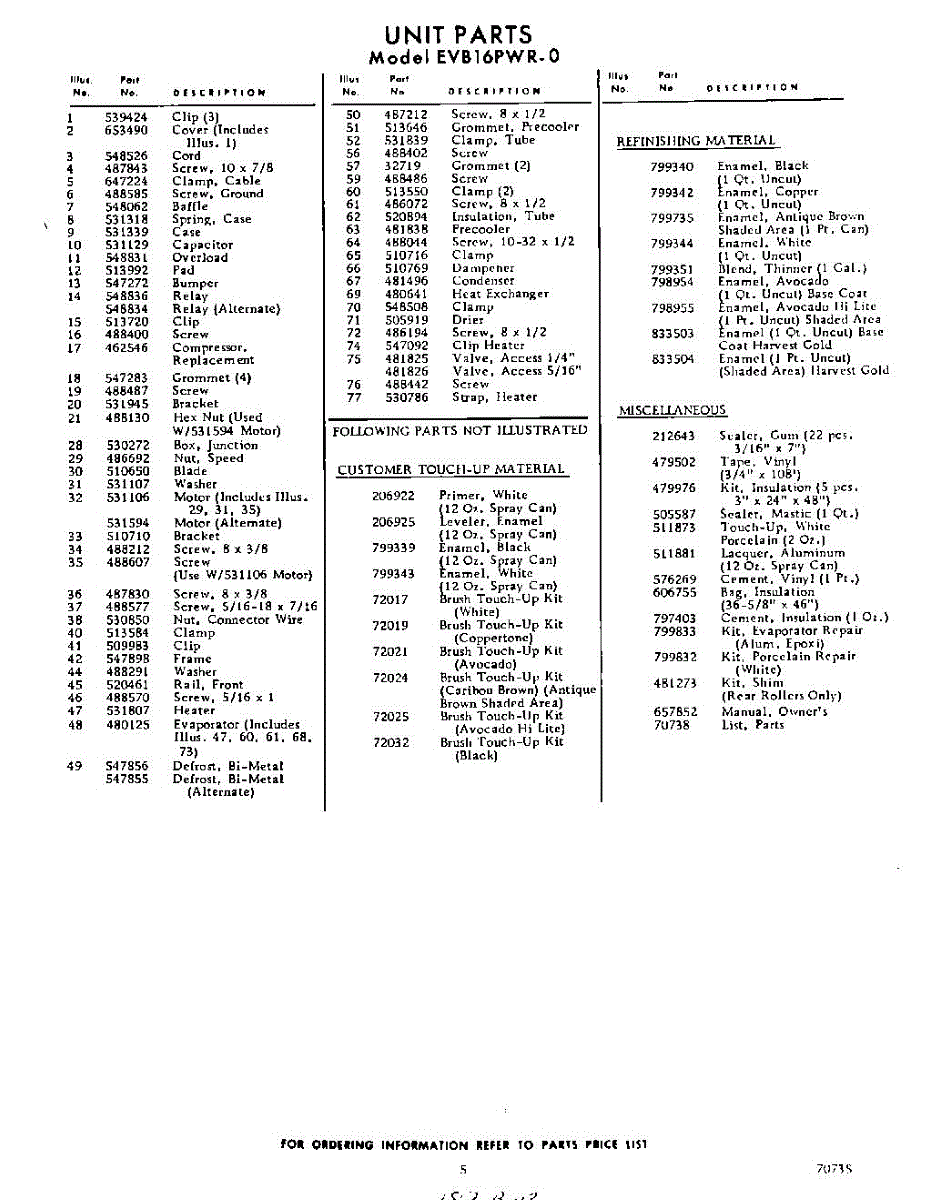 Parts for Whirlpool EVB16PWR0: 05 - Lit / Optional Parts