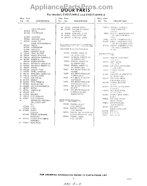 Parts for Whirlpool EVD17JMWR0: 09 - Lit / Optional Parts