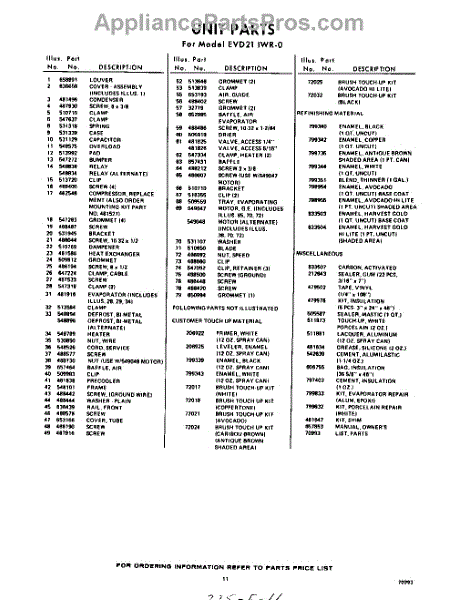 Parts for Whirlpool EVD21IWR0: 11 - Lit / Optional Parts