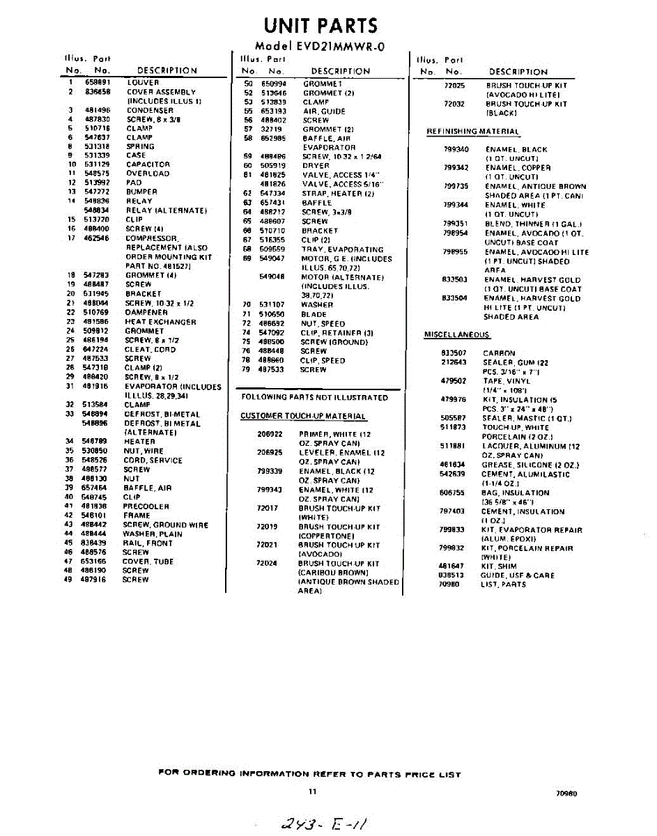 Parts for Whirlpool EVD21MMWR0: 11 - Lit / Optional Parts