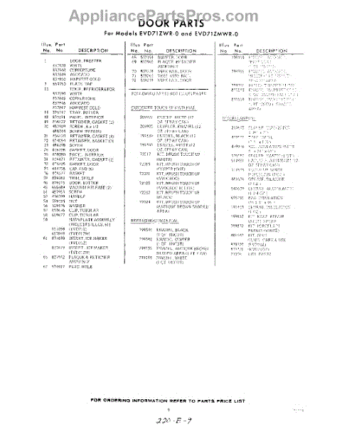 Parts for Whirlpool EVD71ZMWR0: 09 - Lit / Optional Parts