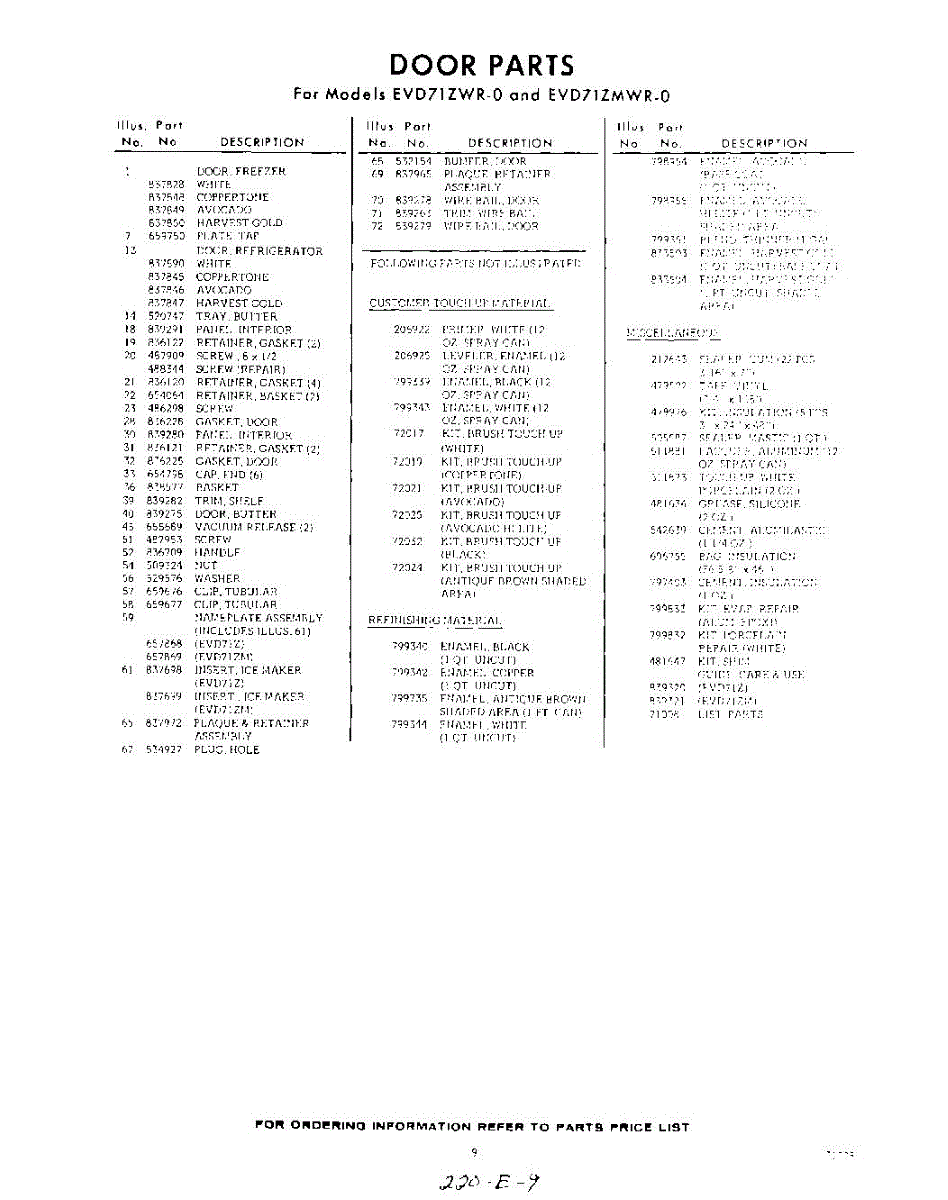 Parts for EVD71ZMWR0