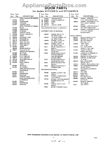 Parts for Whirlpool EVT13JMWR0: 11 - Lit / Optional Parts