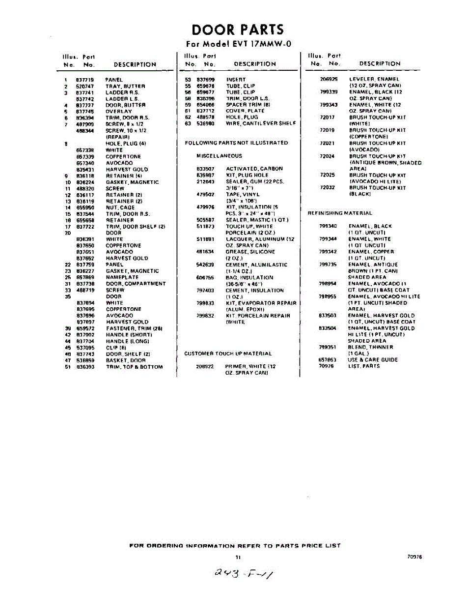Parts for Whirlpool EVT17MMW0: 11 - Lit / Optional Parts