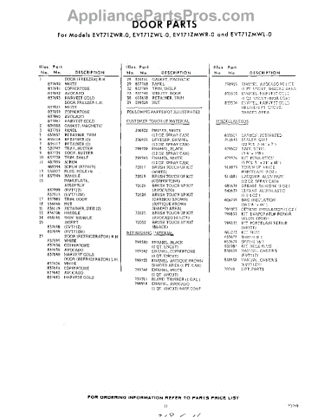 Parts for Whirlpool EVT71ZMWR0: 11 - Lit / Optional Parts