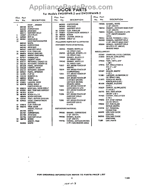 Parts for EWD19PMWR2