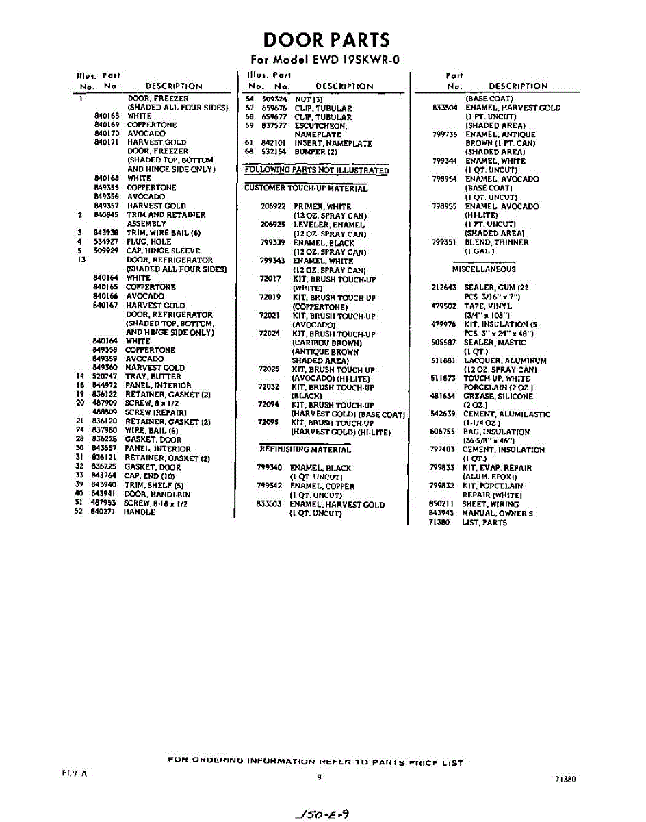 Parts for EWD19SKWR0