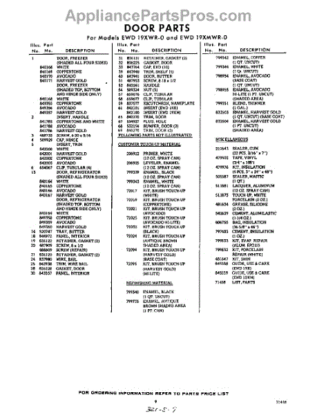Parts for Whirlpool EWD19XMWR0: 09 - Lit / Optional Parts