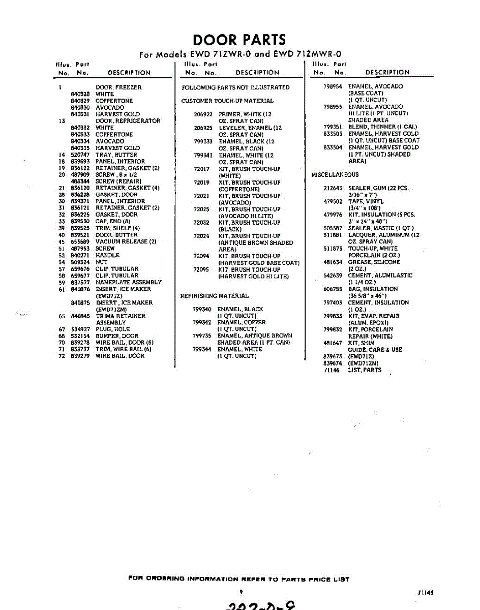 Parts for Whirlpool EWD71ZWR0: 09 - Lit / Optional Parts