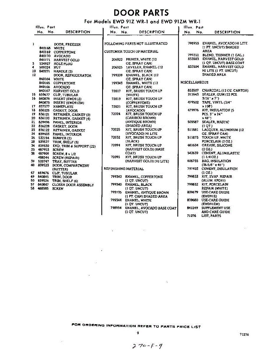 Parts for EWD91ZMWR1