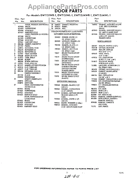 Parts for Whirlpool EWT13JWR1: 11 - Lit / Optional Parts