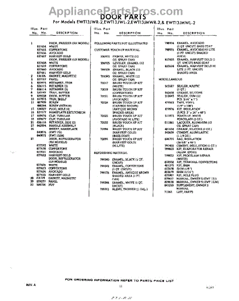 Parts for Whirlpool EWT13JWR2: 11 - Lit / Optional Parts