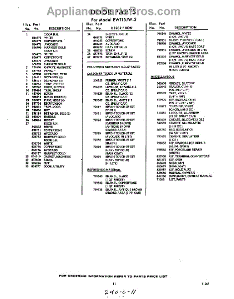 Parts for Whirlpool EWT15JW2: 11 - Lit / Optional Parts