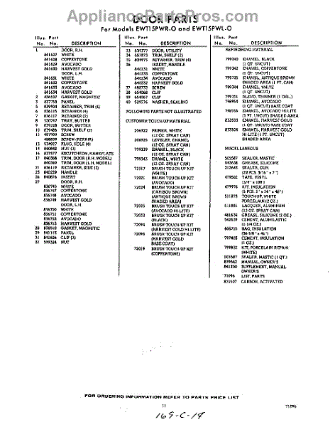Parts for Whirlpool EWT15PWR0: 11 - Lit / Optional Parts