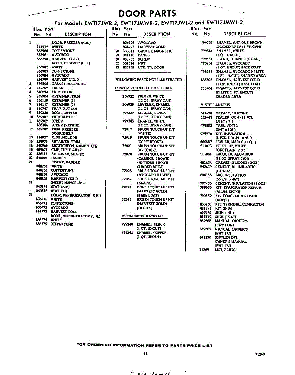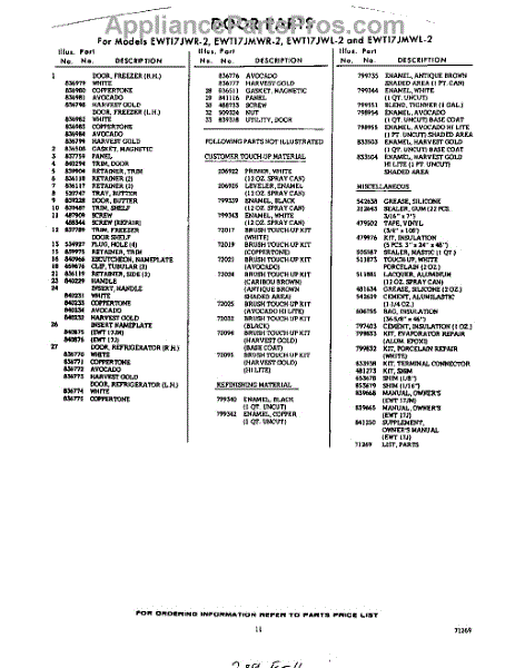 Parts for Whirlpool EWT17JWR2: 11 - Lit / Optional Parts