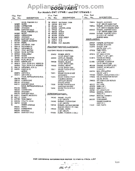 Parts for Whirlpool EWT17PMWR1: 11 - Lit / Optional Parts