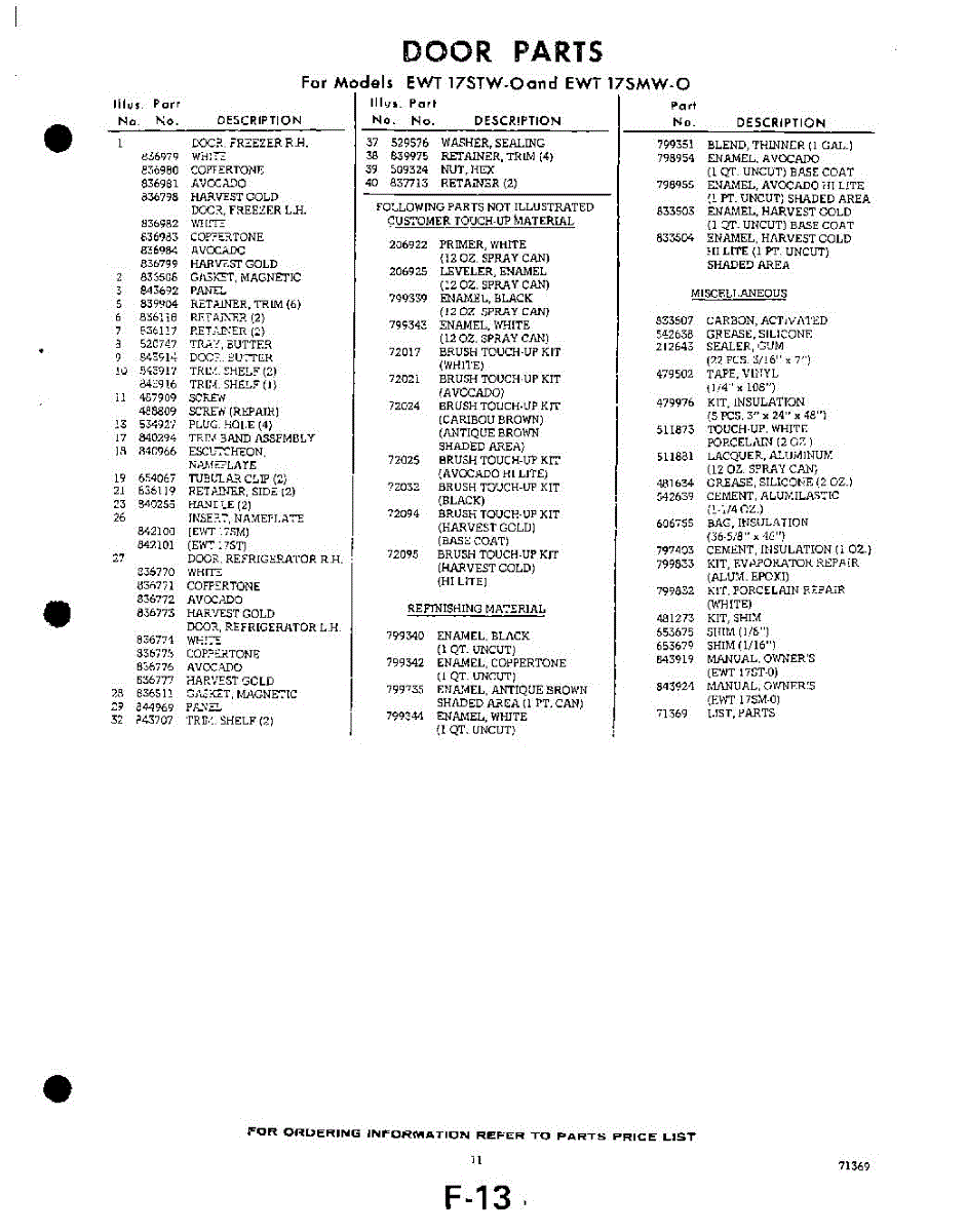 Parts for EWT17STW0