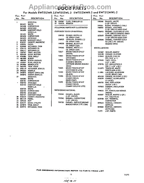 Parts for Whirlpool EWT51ZMWR2: 11 - Lit / Optional Parts