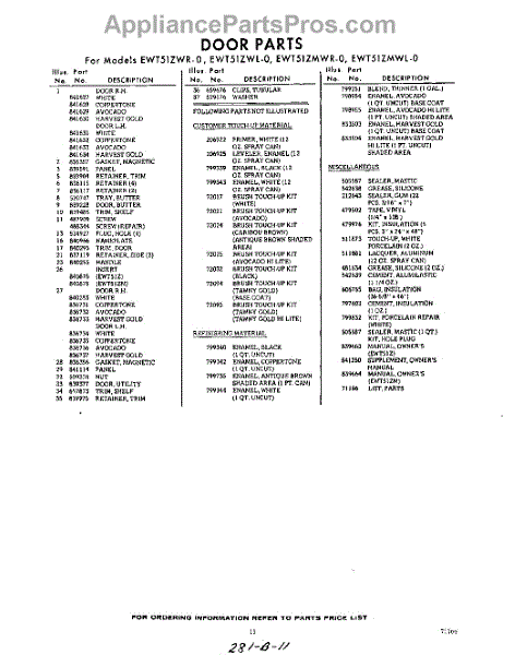 Parts for Whirlpool EWT51ZWR0: 11 - Lit / Optional Parts