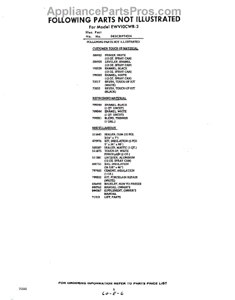Parts for Whirlpool EWV10CWR3: 06 - Lit / Optional Parts