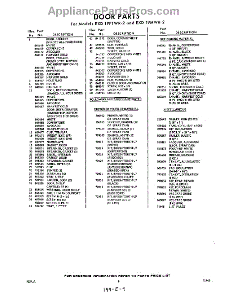 Parts for Whirlpool EXD19PTWR2: 09 - Lit / Optional Parts