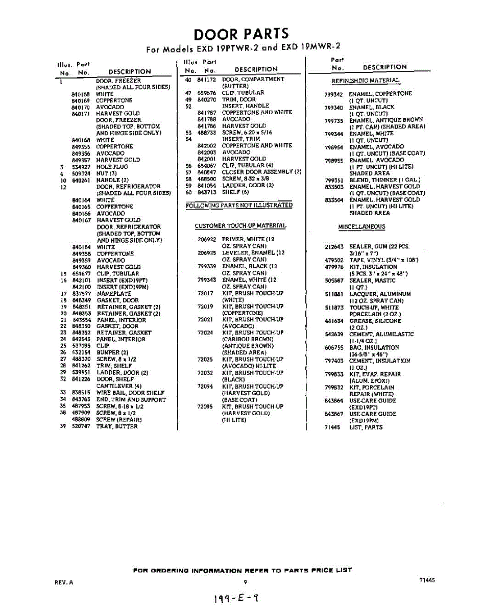 Parts for EXD19PTWR2