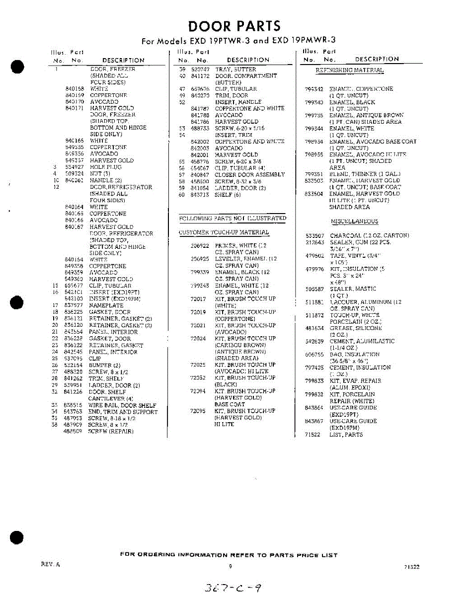 Parts for Whirlpool EXD19PTWR3: 09 - Lit / Optional Parts