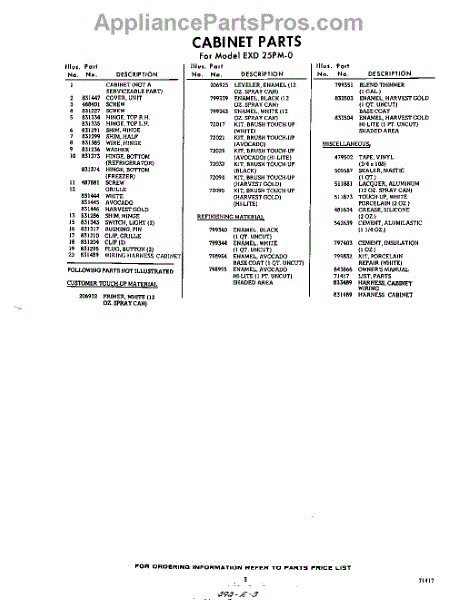 Parts for Whirlpool EXD25PM0: 03 - Lit / Optional Parts