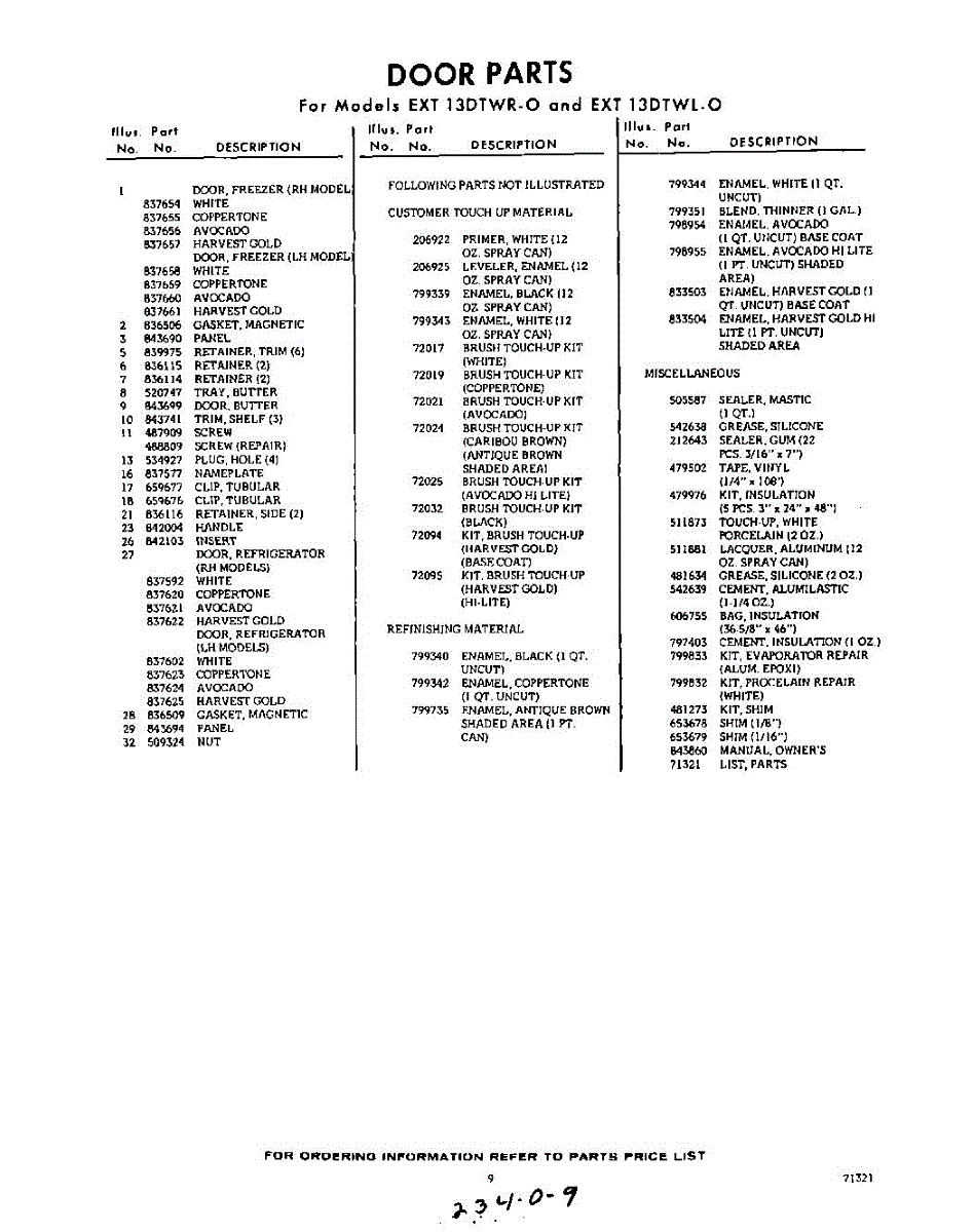 Parts for Whirlpool EXT13DTWR0: 09 - Lit / Optional Parts