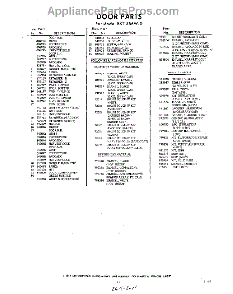 Parts for Whirlpool EXT15JMW0: 11 - Lit / Optional Parts