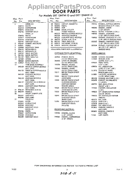 Parts for Whirlpool EXT15NMW0: 11 - Lit / Optional Parts